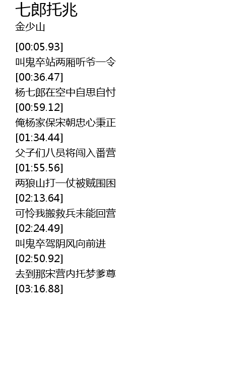 | [03:01.03] | 去到那宋营内托梦爹尊 |