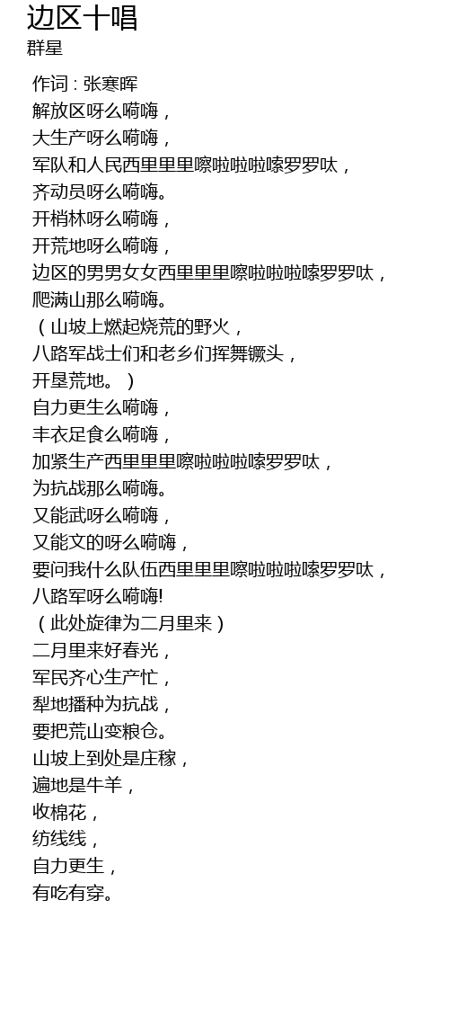 | [00:22.24] | 边区的男男女女西里里里嚓啦啦啦嗦罗罗呔, |
