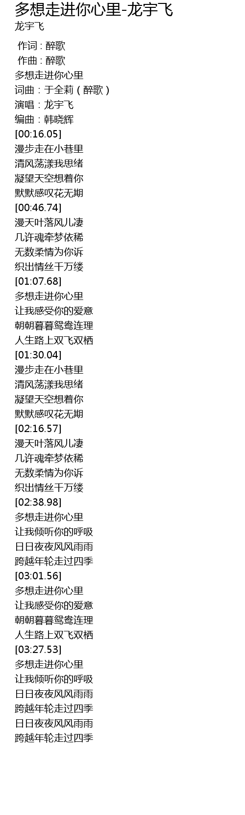 | [03:29.05] | 多想走进你心里 |