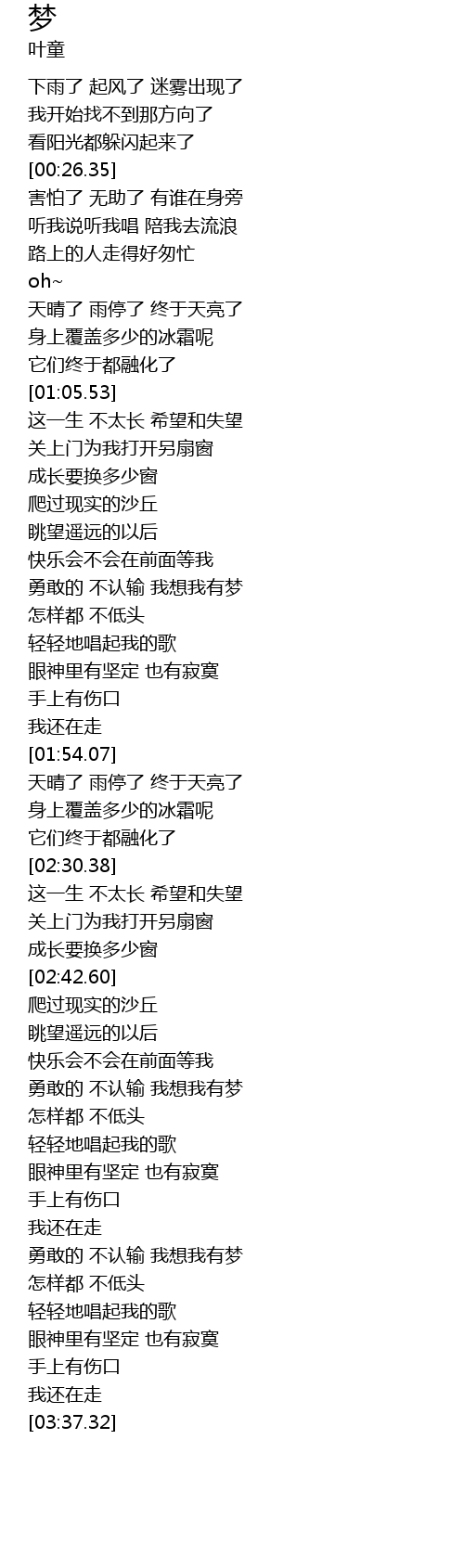 | [01:32.98] | 勇敢的 不认输 我想我有梦 |