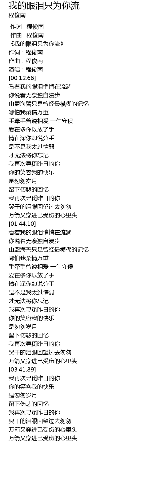 | [00:04.33] | 《我的眼泪只为你流》 |