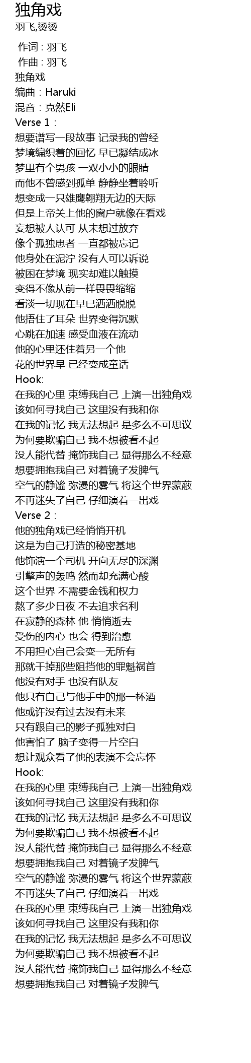 | [00:00.000] | 作词 : 羽飞 |