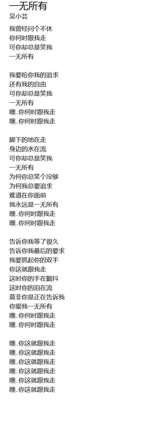| wǒ yǒng yuǎn shì yī wú suǒ yǒu | |