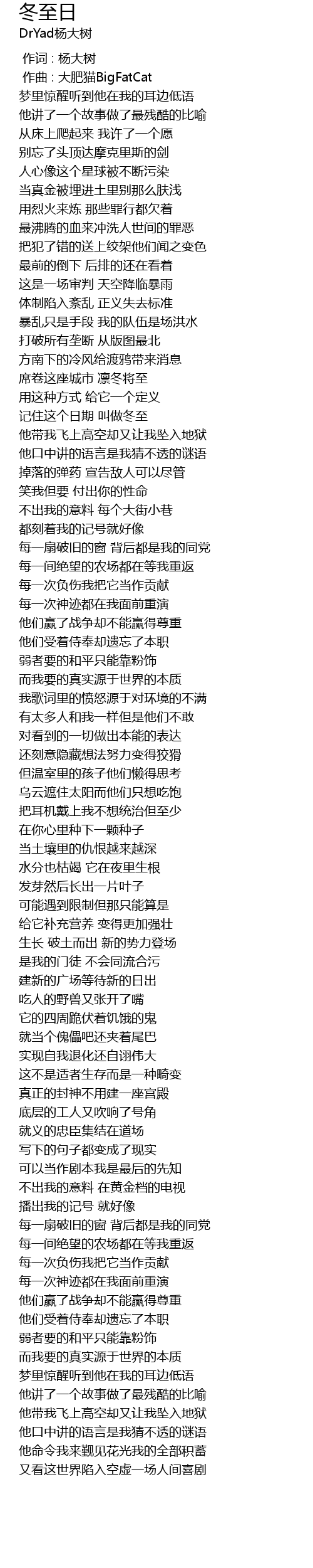 | [00:00.000] | 作词 : 杨大树 |
