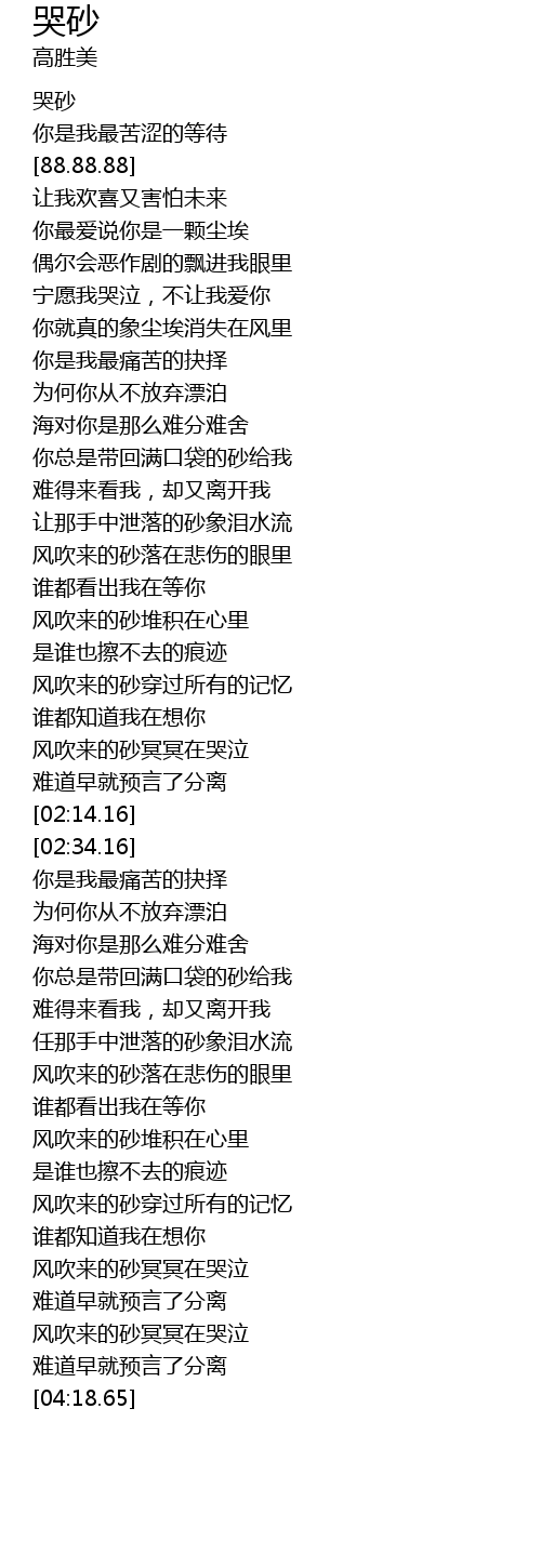 | [00:-3.62] | 哭砂 |