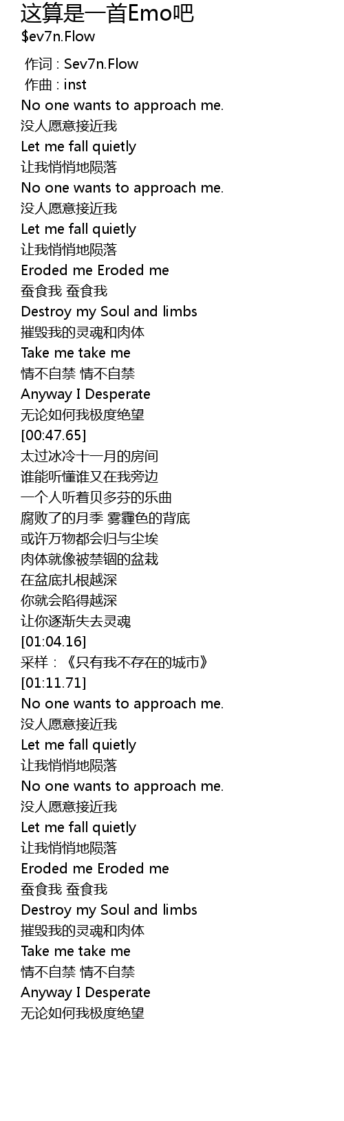 | Song | 这算是一首Emo吧 |