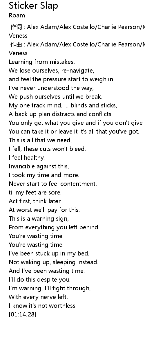 | [00:00.000] | zuò cí : Alex Adam Alex Costello Charlie Pearson Matt Roskilly Sam Veness |