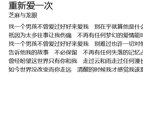 | 找一个男孩不曾爱过好好来爱我 别在乎就算他是什么事也不懂 | |