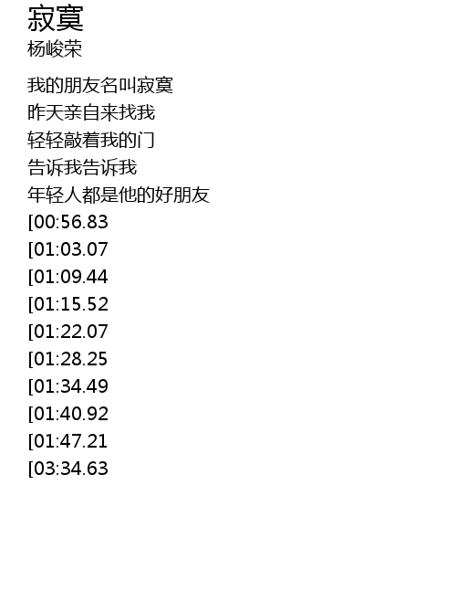 | [02:44.05][01:22.07] | 有位朋友名叫寂寞 |