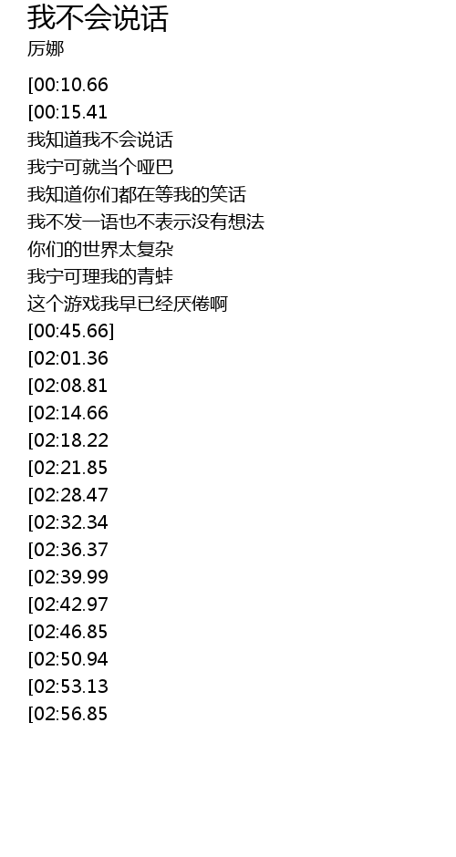 | [01:19.60][02:32.34][03:08.72] | 我宁可就当个哑巴 |