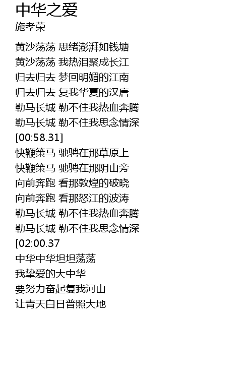 | [01:43.73] | 勒马长城 勒不住我热血奔腾 |