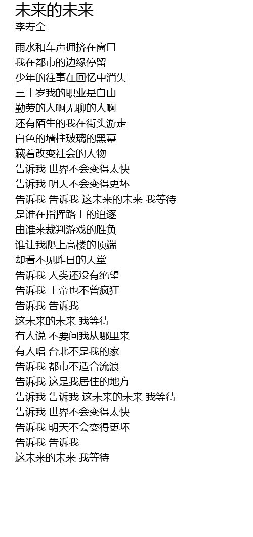 | [05:01.19] | gào sù wǒ gào sù wǒ zhè wèi lái de wèi lái wǒ děng dài |
