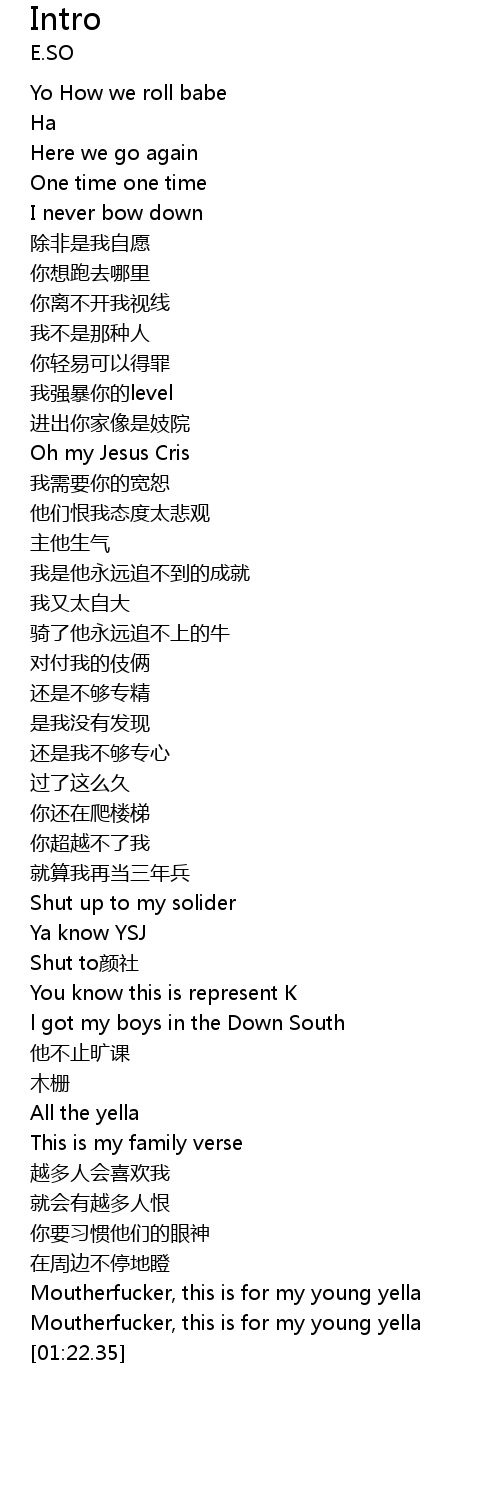| [01:19.11] | Moutherfucker, this is for my young yella |