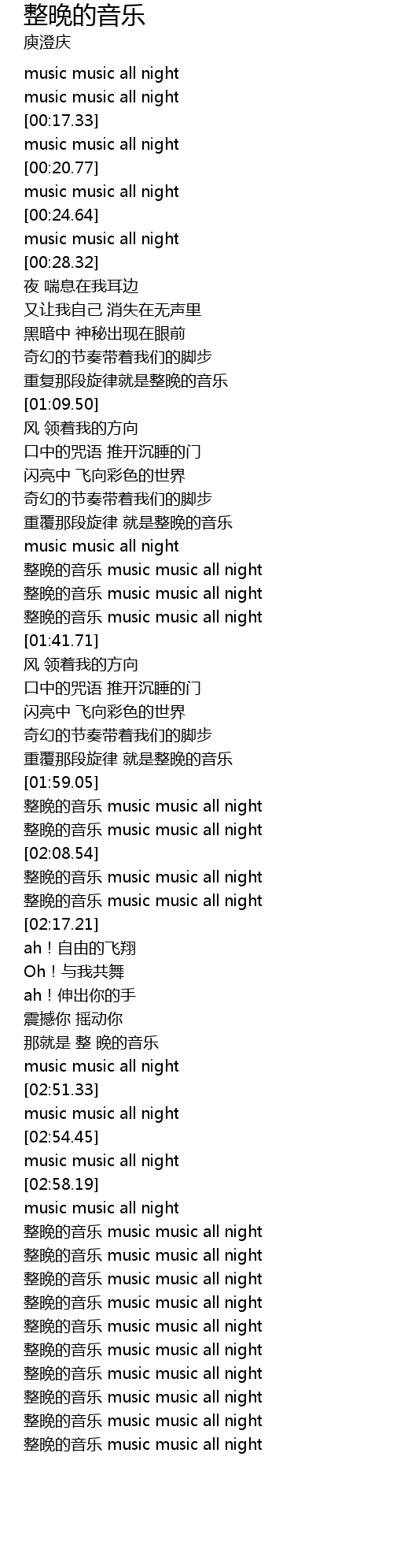 | [03:21.95] | zheng wan de yin yue music music all night |