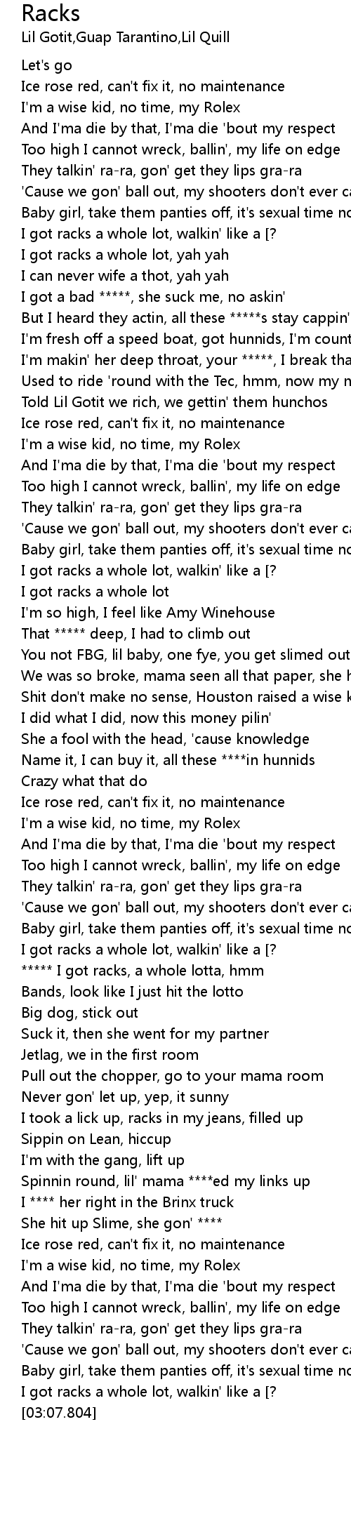 | [00:35.972] | I got racks a whole lot, yah yah |