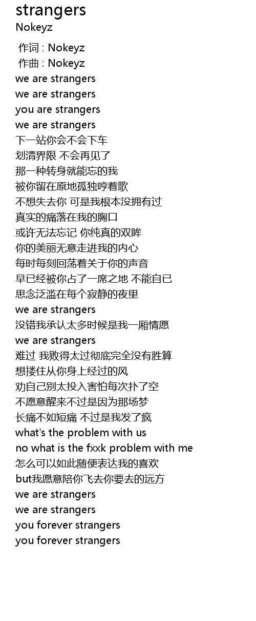 | [00:31.935] | we are strangers |