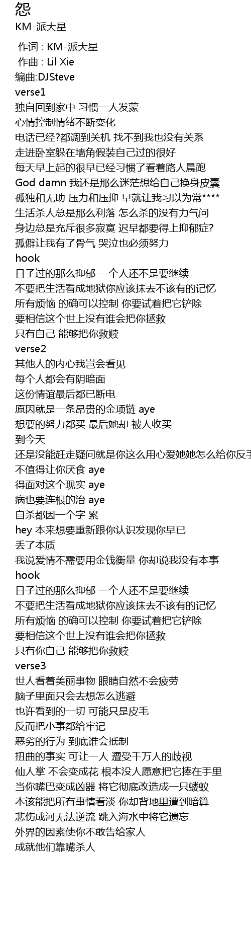 | [01:19.602] | zì shā dōu yīn yí gè zì lèi |
