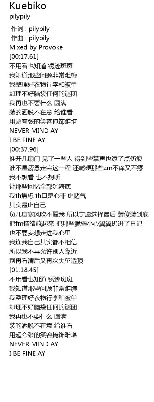 | [00:01.000] | zuò qǔ : pilypily |