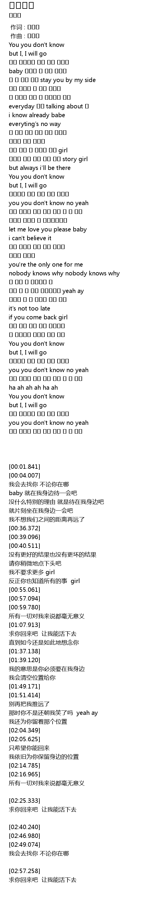 | [00:15.345] | baby 잠깐만 내 옆에 있어봐 |