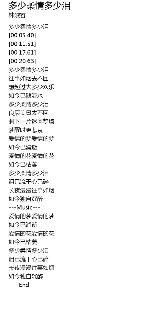 | [00:43.22] | duō shǎo róu qíng duō shǎo lèi |