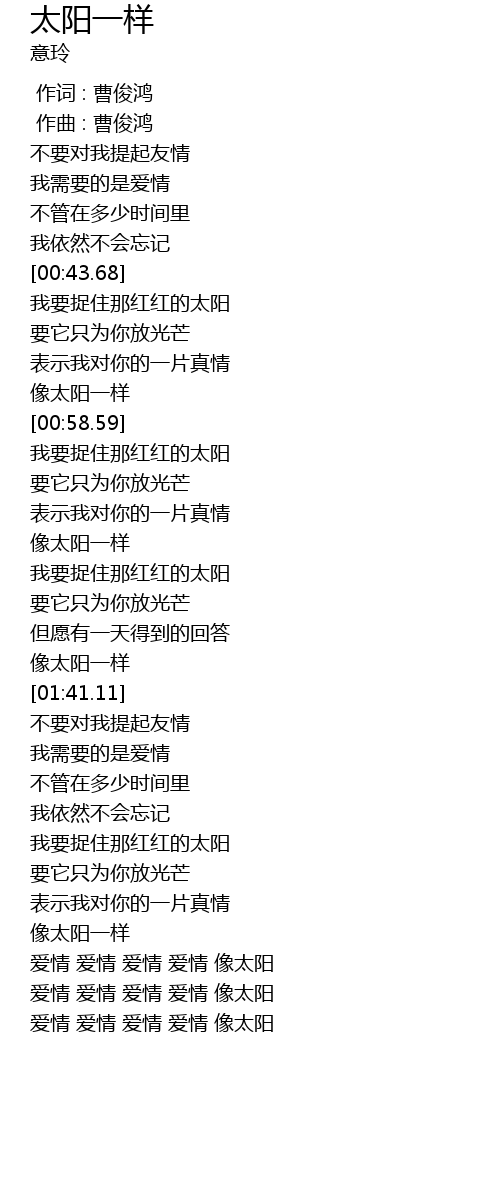 | [02:27.94] | 爱情 爱情 爱情 爱情 像太阳 |