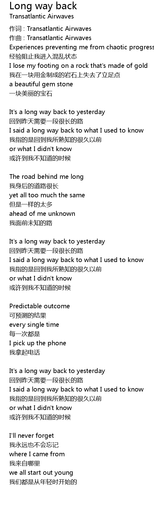 | It's a long way back to yesterday | |