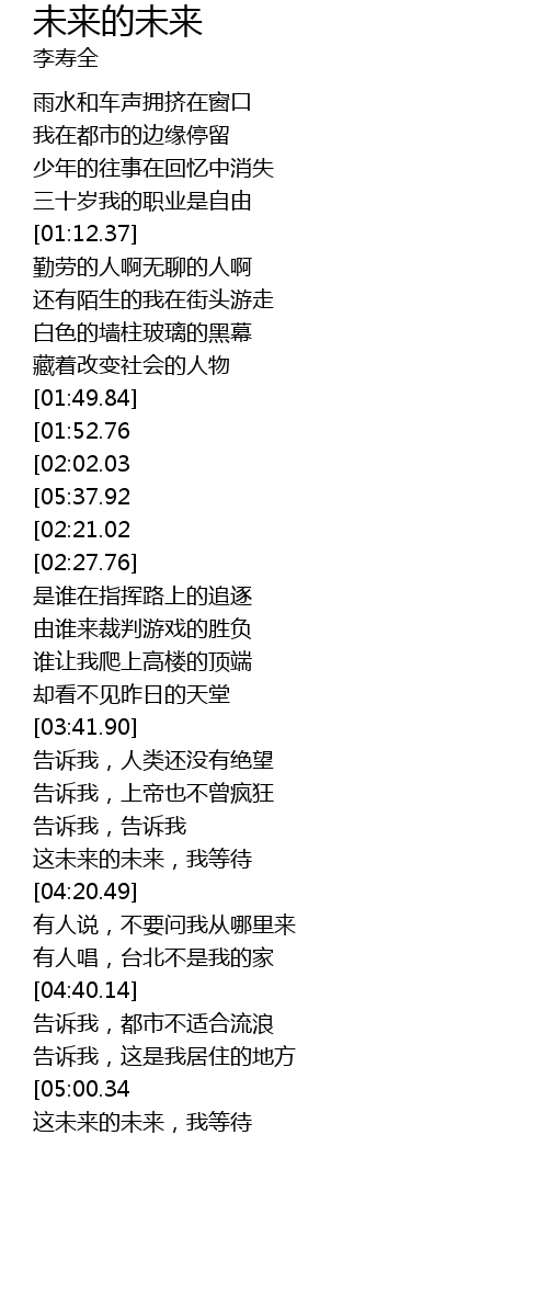 | [04:34.17] | 有人唱,台北不是我的家 |