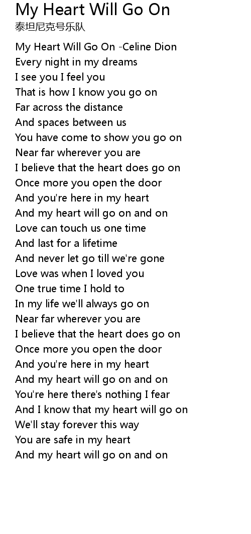 | [00:01.50] | My Heart Will Go On -Celine Dion |