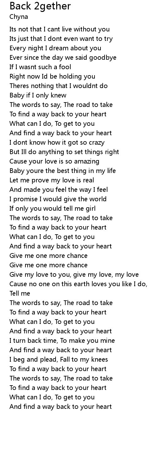 | To find a way back to your heart | |