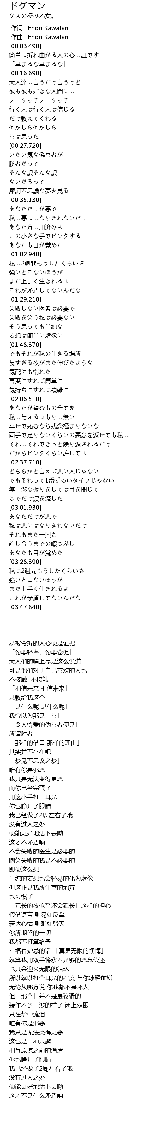 | [00:01.000] | zuo qu : Enon Kawatani |