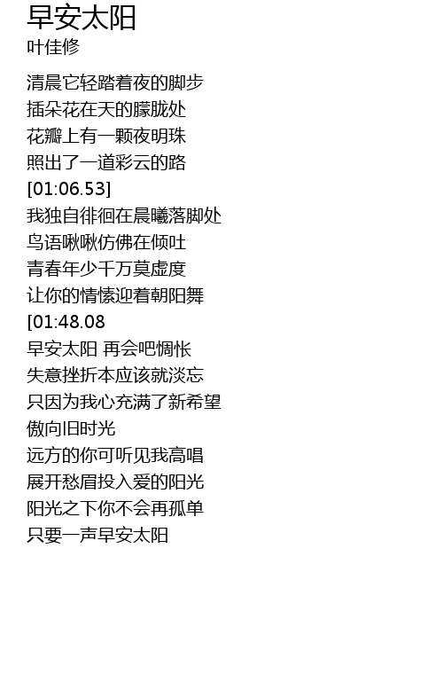 | [01:49.03] | 早安太阳 再会吧惆怅 |