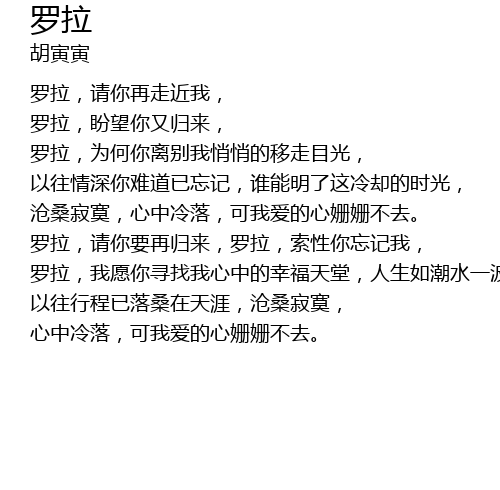 | 罗拉,为何你离别我悄悄的移走目光, | |