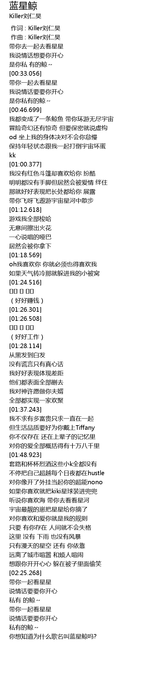 | [02:50.385] | 你想知道为什么歌名叫蓝星鲸吗? |