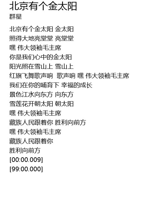 | [00:06.48] | 北京有个金太阳 金太阳 |