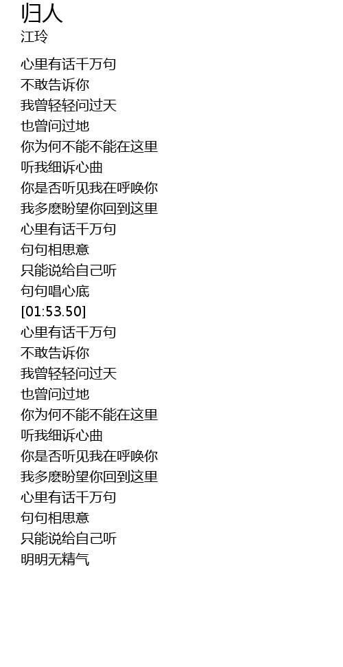 | [01:16.26] | 心里有话千万句 |