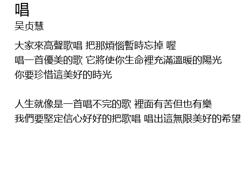 | 唱一首優美的歌 它將使你生命裡充滿溫暖的陽光 | |