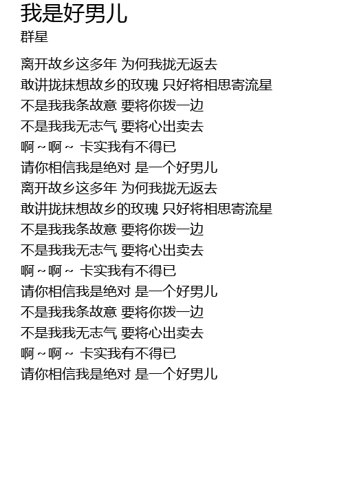 | 请你相信我是绝对 是一个好男儿 | |