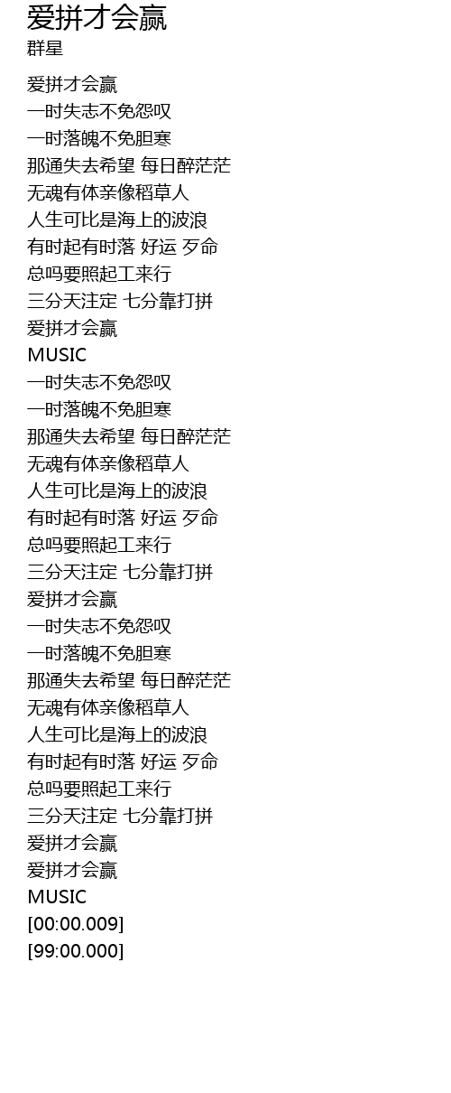 | [02:16.75] | 三分天注定 七分靠打拼 |