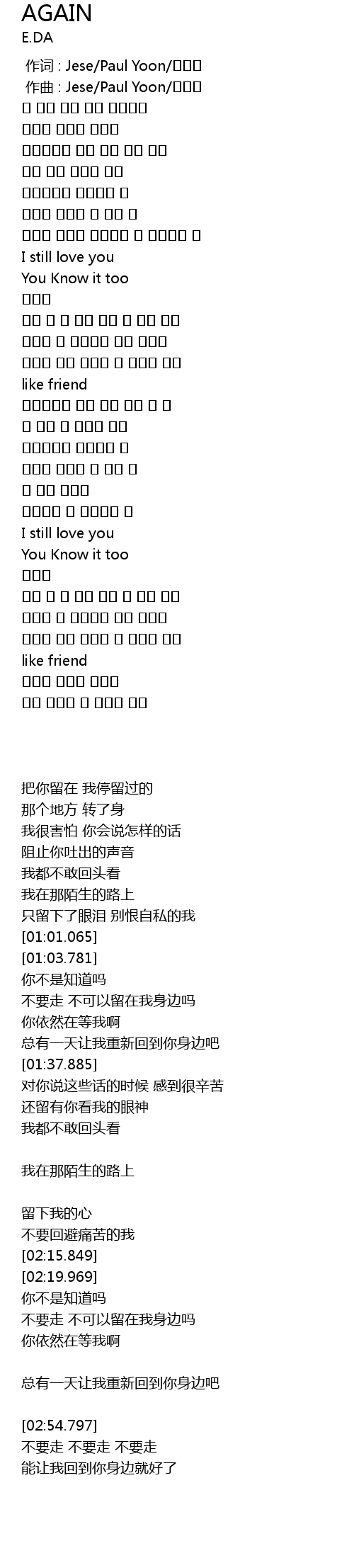 作词 : Jese/Paul Yoon/장인택 |