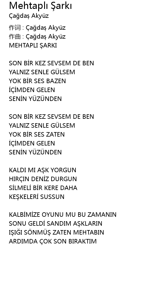 | 作词 : Çağdaş Akyüz | |
