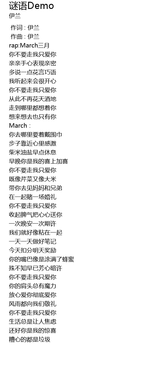 | [00:38.544] | ni bu yao zou wo zhi ai ni |