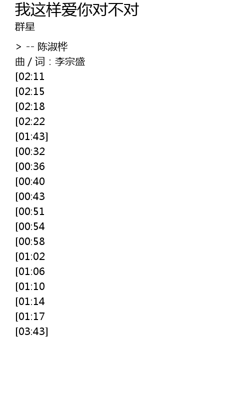 | [03:18][02:11][01:24][00:17] | 我这样爱你到底对不对 |