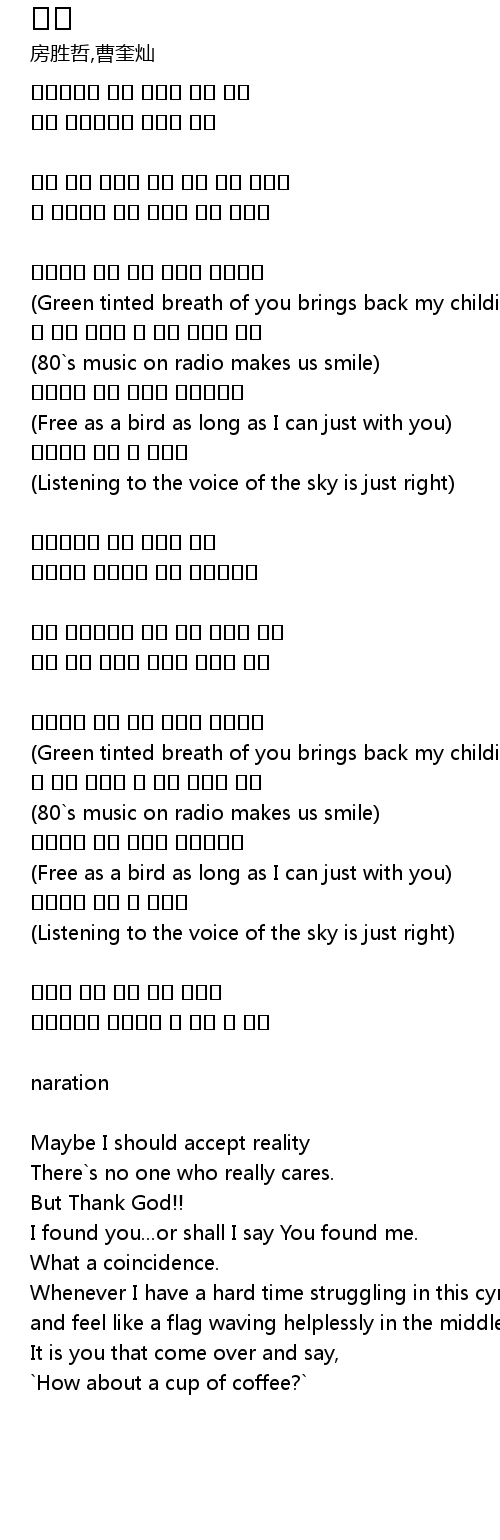 | (Green tinted breath of you brings back my childish innocence) | |
