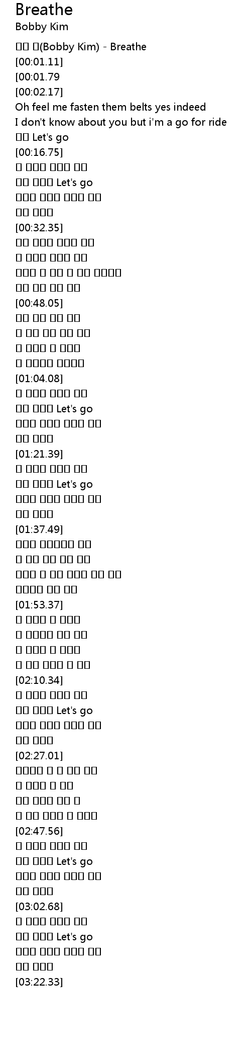 | [00:00.36] | 바비 킴(Bobby Kim) - Breathe |