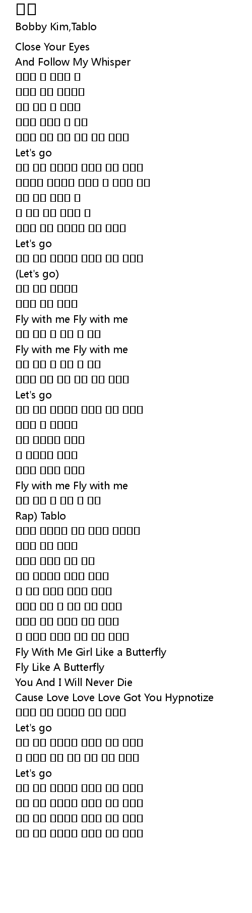 | [02:27.30] | Fly With Me Girl Like a Butterfly |