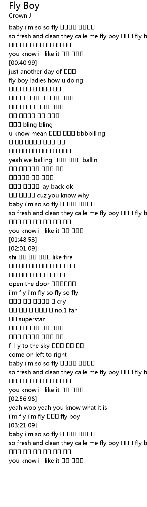 | [01:38.33] | so fresh and clean they calle me fly boy 난진짜 fly boy |