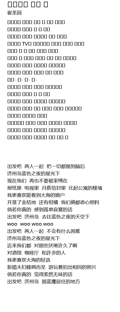 | [01:28.15] | 떠나요 제주도 푸른밤 하늘 아래로 |