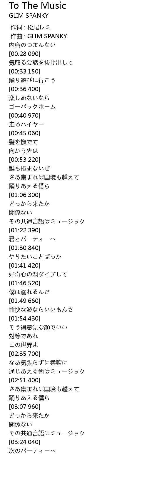作曲 : GLIM SPANKY |