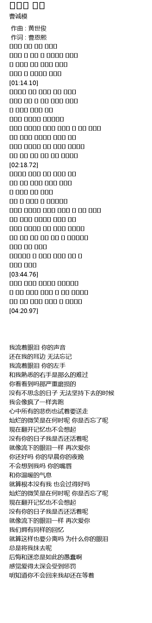| [00:45.54] | 눈물이 나요 그대 목소리 |