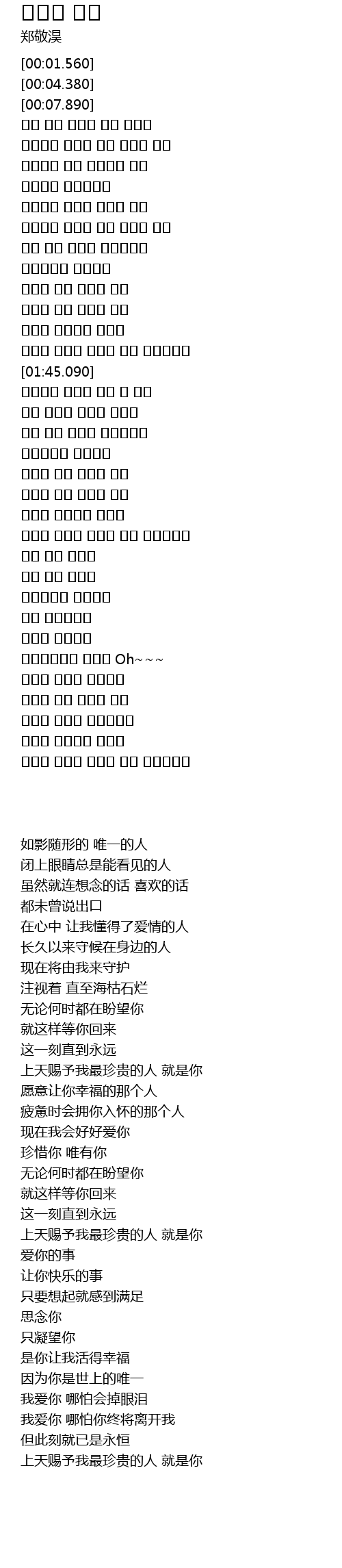 | [01:34.490] | 하늘이 보내준 소중한 사람 그대인거죠 |